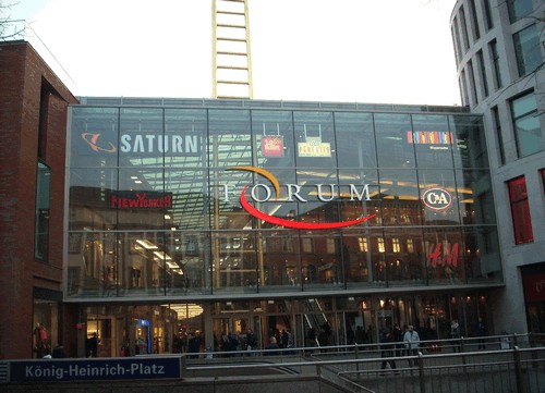 2A Asiafood, Apollo-Optik, Ars Vivendi, Barrique, Bellini, Bijou Brigitte, Blumen Centrale, Bonita, C&A, China Pavillon, China-Imbiss, China-Restaurant, Colloseum, Cosmo, Deichmann, Dismer, DM Drogerie, Douglas, Dressler Outdoor, Duisburg Forum, EasyCredit Volksbank, Engbers, Esprit, Fielmann, FORUM Duisburg, Frisör Klier, Fritten König, GameStop, Gina Laura, Gravis, H&M, Ilselya, JD Sports, Jeans Fritz, Juwelier Kraemer, Kamps, Karstadt, Karstadt Restaurant (Le Buffet), KFC, Le Bon - Salloura Sweets, Lieblingsdüfte, LoLu - Vegane Vegetarische Küche, Löwen-Apotheke, Maredo Steakhaus, Mayersche Buchhandlung, McDonald's, McPaper, Mercatorhalle, Nanu-Nana, New Yorker, O2, Only, Pandora, Passione, Promod, Reno / Payless Shoe / Bama, Rieker, Runners Point, s.Oliver, Saturn, Schlemmer Kebap, Sidestep, Six, Stadt-Parfümerie Pieper, Starbucks, Street One, Styleboxx, Subway, Tabac & Co., Tamaris, Telekom, Thai Grill Street Kitchen, The Sting, THE STORE | CAMP DAVID | SOCCX, Triumph, TUI, Vodafone, Waffel-Haus, Walbusch, WE Fashion, WMF, Woyton, Yves Rocher, Zara